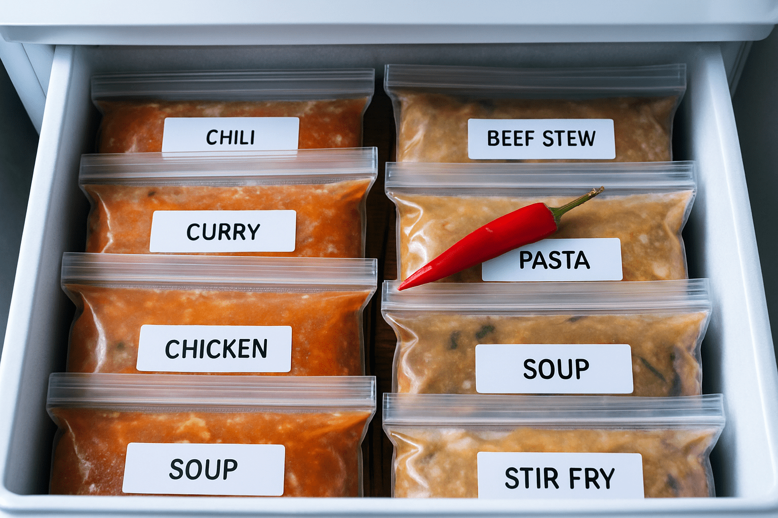- Freeze in flat bags—faster thawing, zero wasted shelf space.